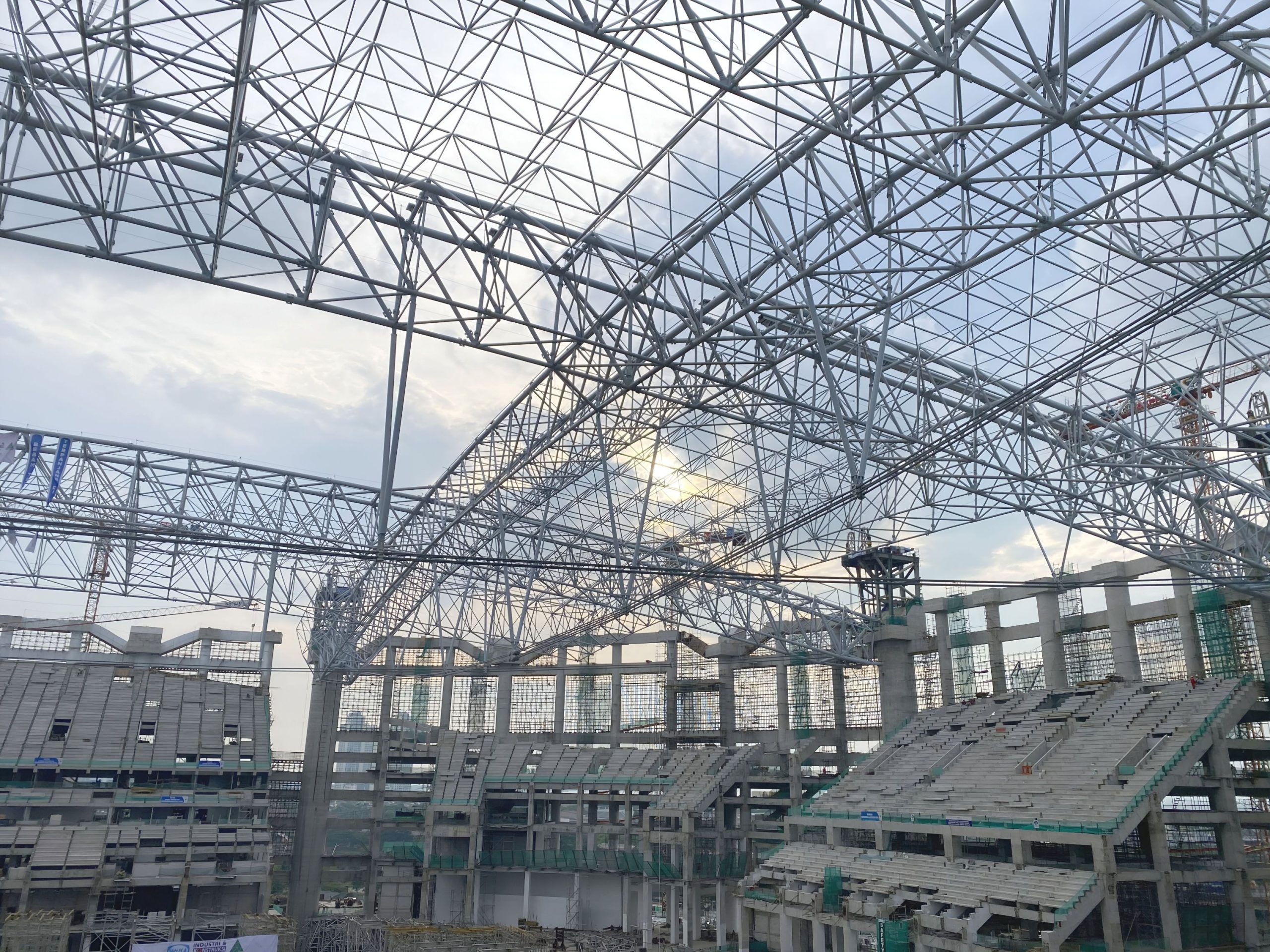 The stadium’s roof was lifted using a synchronized heavy lifting system with 16 strand jacks, monitored centrally to ensure precision with a maximum deviation of only ±50 mm.